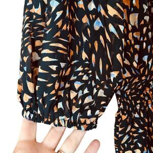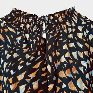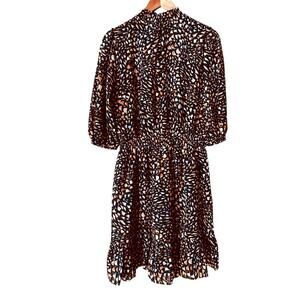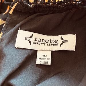 Nanette Lepore Dress Size 10 Smocked Waist Black Neutral Print Cottagecore Chic