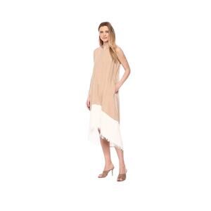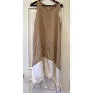 Nanette Lepore Dress Size 14 Sleeveless Cream And White Color Block Frayed Hem