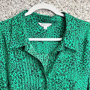 Nanette Lepore Dress Women’s 14 Green & Black Leopard Pleated Long Sleeve NWT