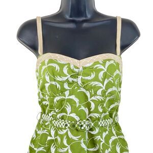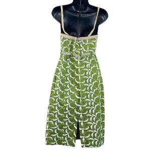 Nanette Lepore Embroidered Green Strapless Belted Midi Sheath Dress Sz S in EUC