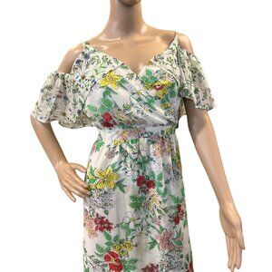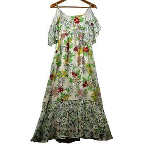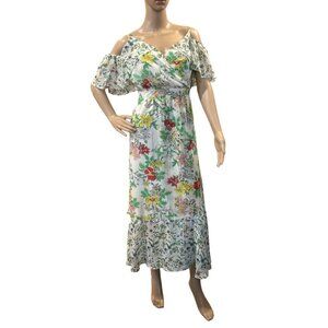 Nanette Lepore Floral Cold Shoulder Maxi Dress Ruffle Hem Summertime Dress Sz 6