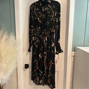 Nanette Lepore Very Black Multi Treasures Floral Print Dress. Size 14. NWT.