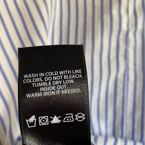 Nanette Lepore Front Tie Gold Embellished Blue White Stripe Blouse Size Large. Excellent preowned condition. Measurements Shoulder to shoulder: 17" Underarm to underarm: 22" Length: 23" Sleeve: 24". Tencel/Cotton Blend. Offers always welcome! Measurements are approximations taken while hanging