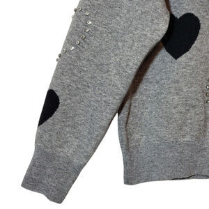 Nanette Lepore Gray Heart Knit Sweater Rhinestone Studs Casual Chic Cozy Size L