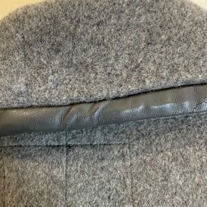 Keywords: Nanette Lepore, gray coat, wool coat, wrap coat, belted coat, trench coat, shawl collar, faux leather trim, mid length coat, winter coat, fall coat, outerwear, womens coat, M/M, medium coat