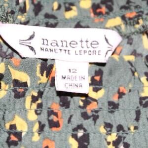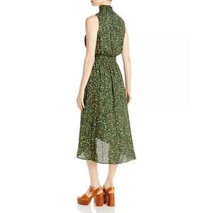 Chic and flattering sleeveless midi dress by Nanette Lepore. Features a rich green base with an abstract leopard print in mustard, black, and rust tones. Designed with a smocked mock neckline, elastic waistband for shape, and a softly flared hemline that moves beautifully. Effortlessly transitions from office to evening or weekend brunch.