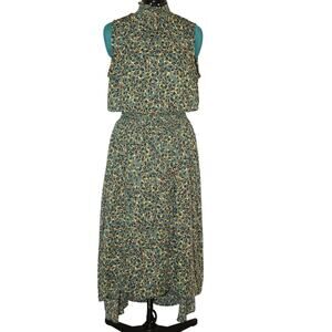 Nanette Lepore Green Leopard Print Fall Vibes Mock Neck Midi Dress Size 12