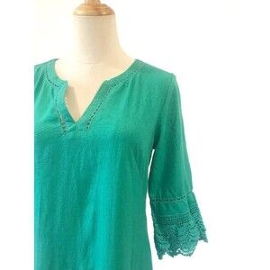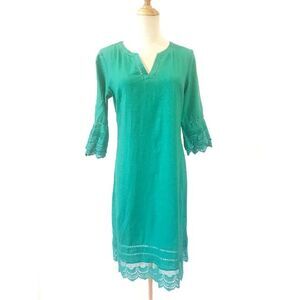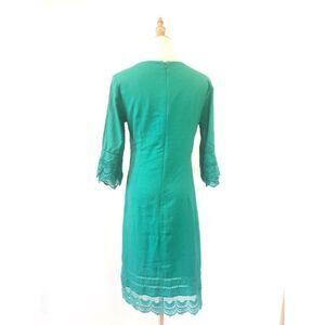 Nanette Lepore Green Mini Dress Size 4 Linen Crochet Trim Summer Lace