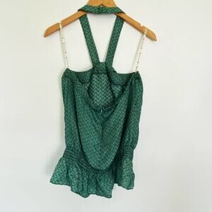 Nanette Lepore Green Silk Scarob Dot Halter Blouse Cami Tank Top NWT
