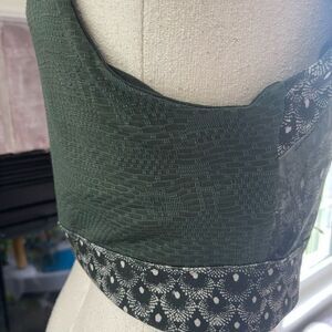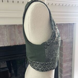 Nanette Lepore Green/Beige Aztec Print Cropped Tank Top With Cut-Out Detail At Shoulder...Elasticized Band