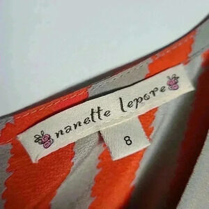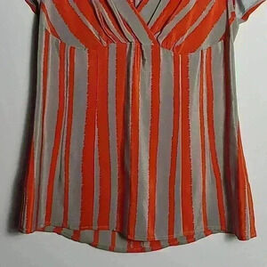Nanette Lepore Grey/Orange Striped 100% Silk Short Sleeve Top Size 8