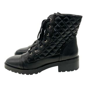 Nanette Lepore Idalia Black Quilted Combat Boots Lugg Sole Women’s 10