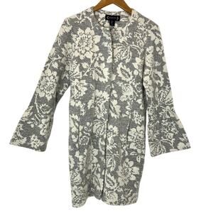 Nanette Lepore - Ivory Wool Blend Knit Jacquard Coat w/ Bell Sleeves- Women's M
