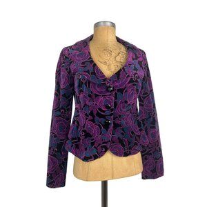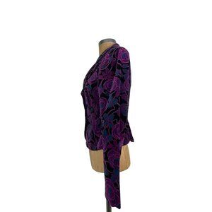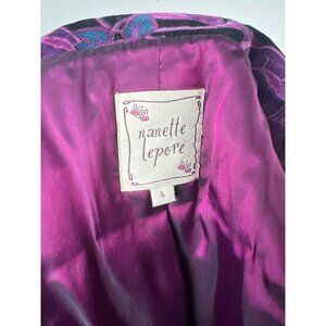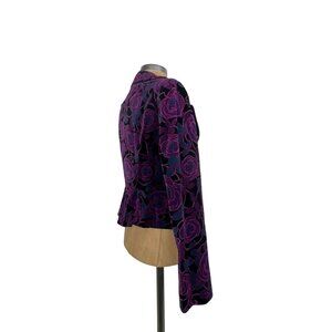 Nanette Lepore Jacket Purple Blue Black Floral Velvet Blazer Authentic Vintage N