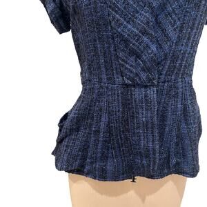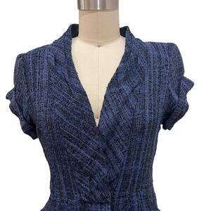 Nanette Lepore Jacket Womens 4 Blue Black Tweed Belted Short Sleeve