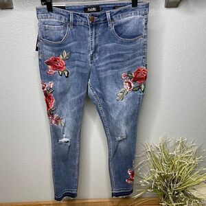 Nanette Lepore Jane Crimson Bloom Highrise Broadway Crop Jeans Size 10