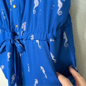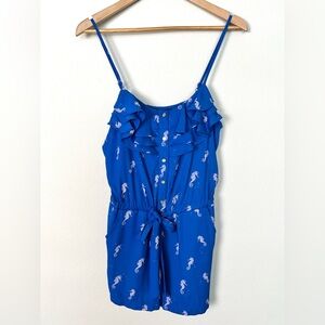 Nanette Lepore L’Amour Seahorse Ruffle Romper Royal Blue Nautical Beach Size M