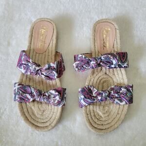 Give off summer vibes when wearing the Lily bow sandal from Nanette Nanette Lepore. This two-band silhouette is fashioned with an espadrille trim along thefootbed and flatform outsole.