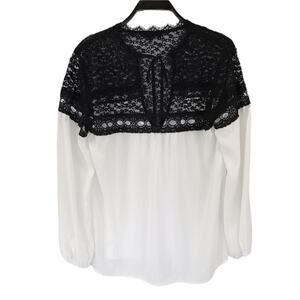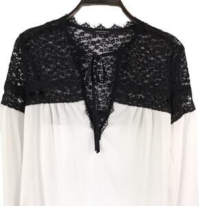 Nanette Lepore Tainted Love Blouse in the color Ivory (black lace on top and white on bottom and sleeves).