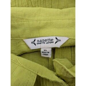 Nanette Lepore Lime Green Short Sleeve Button Up Lightweight Blouse Top Size XL