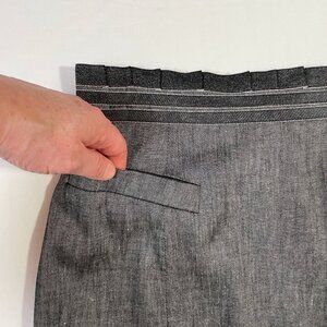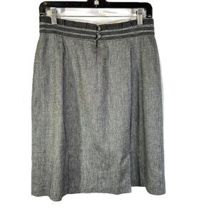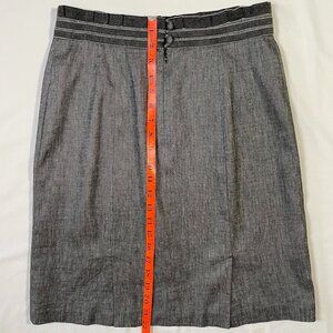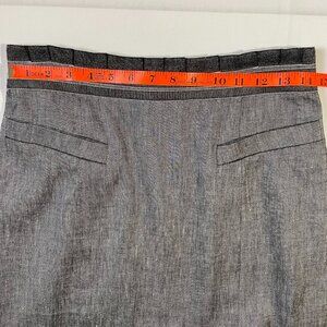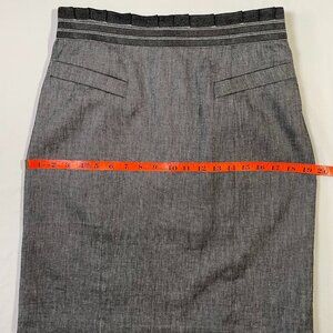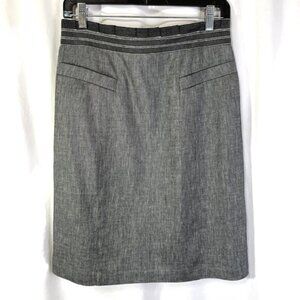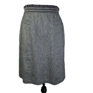 Nanette Lepore Linen Blend Pencil Skirt Gray Knee Length Ruffle Waist Size 8