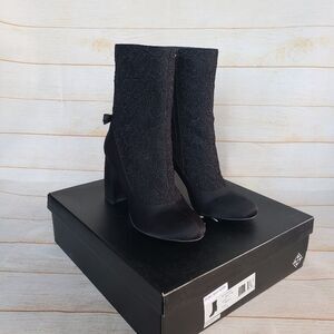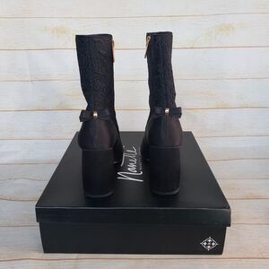 Nanette Lepore Linette Satin Lace Round Toe Block Heel Boots Black Size 7 1/2