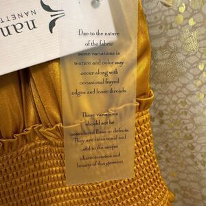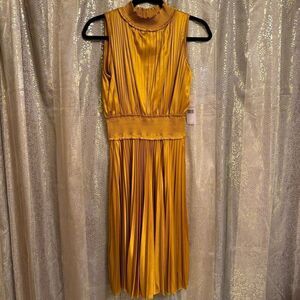 Brand new with tags, smoke and pet free home. No flaws at all. Beautiful shiny satiny deep golden color. This is stunning, perfect to wear as a wedding guest, special occasion, cocktail party, Holiday Party or graduation dress. Knee-Midi length depending on your height. Retails for $148 new.