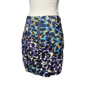Nanette Lepore Multi color Print Skirt Navy Cream Purple Blue Ruched Size 6