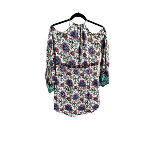 Nanette Lepore Multicolor Paisley Keyhole Boho Cutout Top Size L Beach Travel