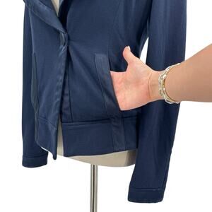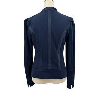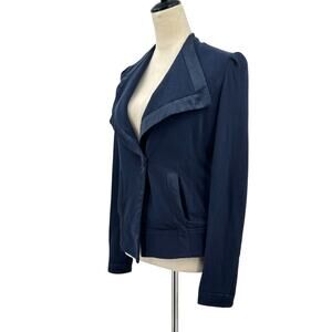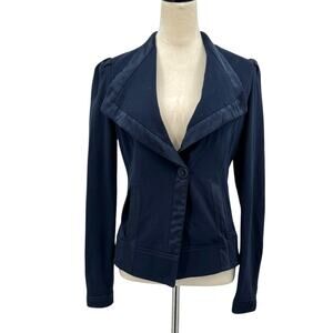Nanette Lepore Navy Knit Silk Trim Collarless Single Button Office Blazer Jacket