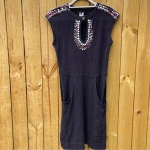 rare almost sheer Nanette Lepore Navy Sweater Dress Beaded Mock Neck Key Hole Bohemian Mini with pockets this is the best dress great for spring summer or even with cardi and boots for fall. This is a rare piece I think I bought at anthropologie