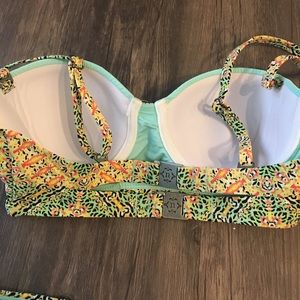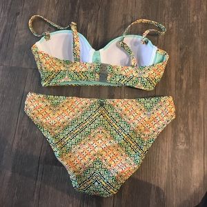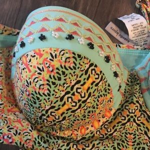 Gently worn twice beautiful, bright bikini. True to size. Removable straps. Beaded detail. Support cups. XS top and bottom.