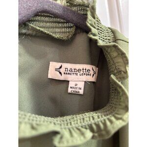 Nanette Lepore Olive Green Puff Sleeve Smocked Waist Ruffle Hem Dress Size 2