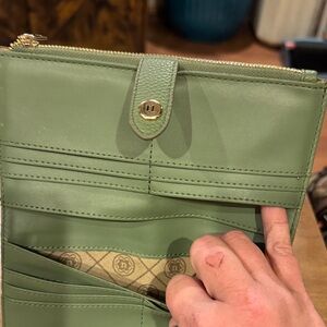Nanette Lepore Olive Green Wallet with Gold Accents