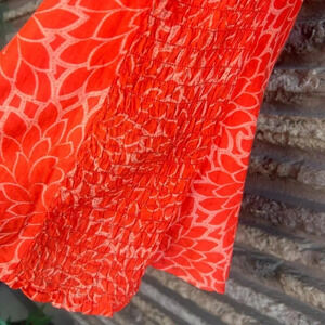 Feminine bright orange floral sleeveless tank with a ruffle cold shoulder accent