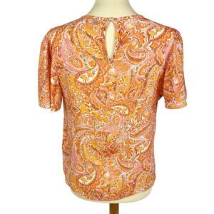 Nanette Lepore Orange Pink Floral Crochet Lace Short Flutter Sleeve Top Medium