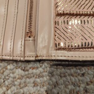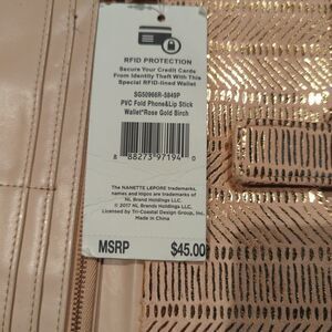 Nanette Lepore PVC Fold Phone Lip Stick Wallet Clutch Rose Gold RFID Lined