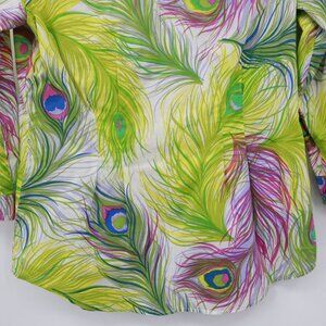 Nanette Lepore Peacock Print Top Women 2 White Boho Unique Artsy Creative Whimsy