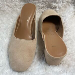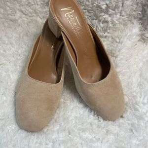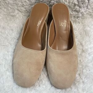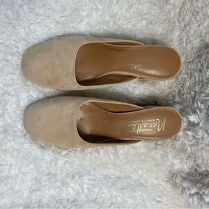 Nanette Lepore Peggy leather suede khaki mules 2.5” block heels Size 8.5