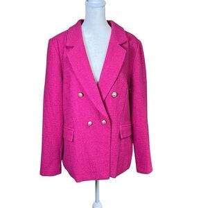 Nanette Lepore Pink Boucle Tweed Double Breasted Blazer Jacket Coat Sz 16 NEW