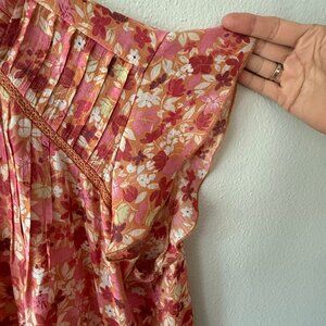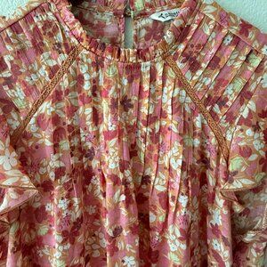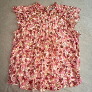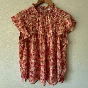 Nanette Lepore Pink Floral Ruffle Hems Flutter Short Sleeve Pintuck 27Top Size L