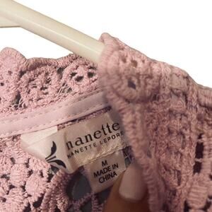 Nanette Lepore Pink Lace Mock Neck Sleeveless Zipper Back Blouse Women SZ M