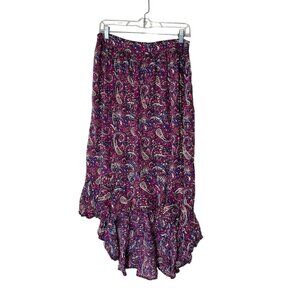 Nanette Lepore Purple & Blue Asymmetrical Paisley Cotton Blend Women's Skirt Size L