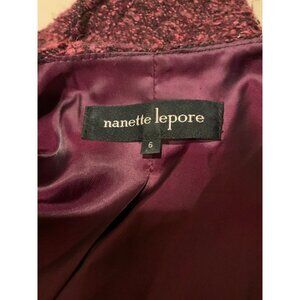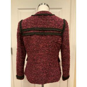 Nanette Lepore Purple Tweed Jacket W/ Black Fringe Trim, Size 6