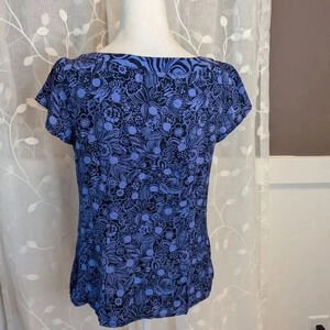 Nanette Lepore Purple/Black Floral Top, 100% Silk, Size 8