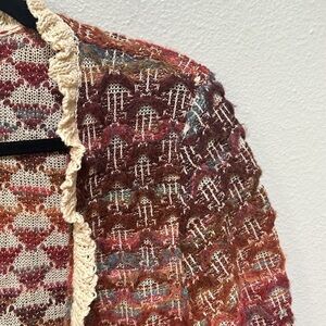 Nanette Lepore Red Boho Wool Blend knit open front ruffle cardigan sweater, XL