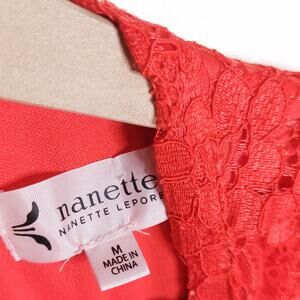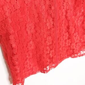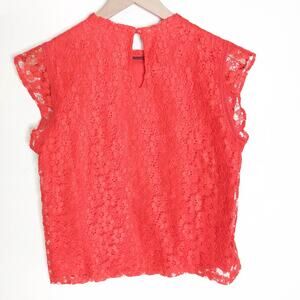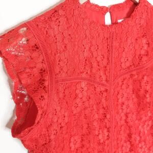 Nanette Lepore Red Lace High Neck Cap Sleeve Blouse Medium