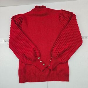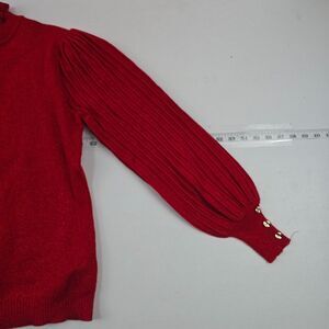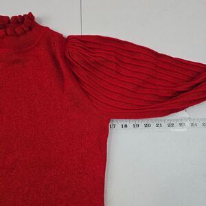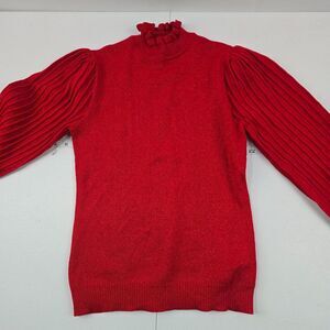 Nanette Lepore Red Puff Sleeve Sweater Ruffle Neck Metallic Knit Small 4695