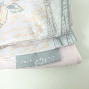 Nanette Lepore Reversible Blanket Baby Girl Velour Pink Layette Paris Roses EUC