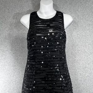 * Sleeveless tank style cocktail dress with allover horizontal black sequin embellishments